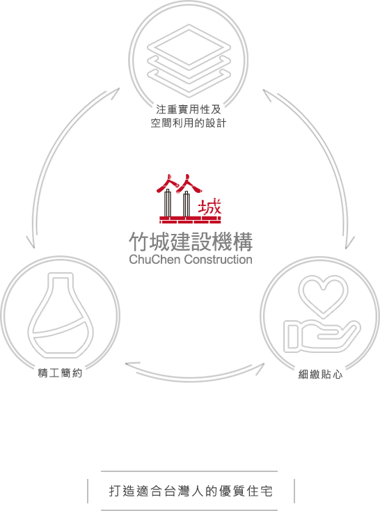 本公司自1996年成立以來推出逾10,000的精緻住宅,「竹城建設」命名取自竹子精神,賦予高風亮節、謙遜堅忍的隱含價值,堅持以精萃醞釀的建築品質,精雕出完美的建築地景。「竹」台語音同「德」師法日式的處事風格,從選地、建造、到週邊規劃,甚或施工細節一絲不茍的嚴謹要求,預售案的現場也以實際1比1的樣品屋及尺寸作呈現,無論是售前規施工亦或售後的永續社區服務,同仁們將心比心,就像買自己房子般,如同竹城的LOGO,將「人人」置於企業標示中,凝聚住户對本公司的認同,十五餘年來100%銷售,為無數家庭打造出築夢的居所,從公司同仁們到建案的住户,大家彷若一座堡壘般,一同造夢一同築夢一同把夢實踐。